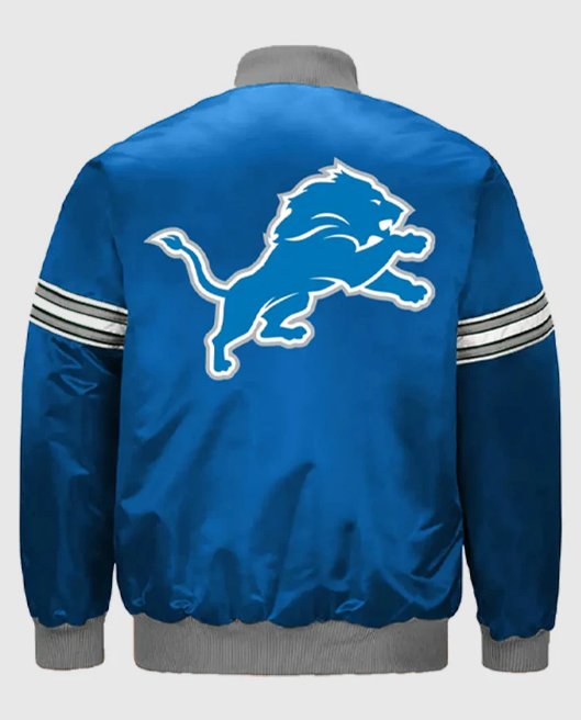 Detroit Lions Striped Blue Satin Jacket – Classic Game-Day Style